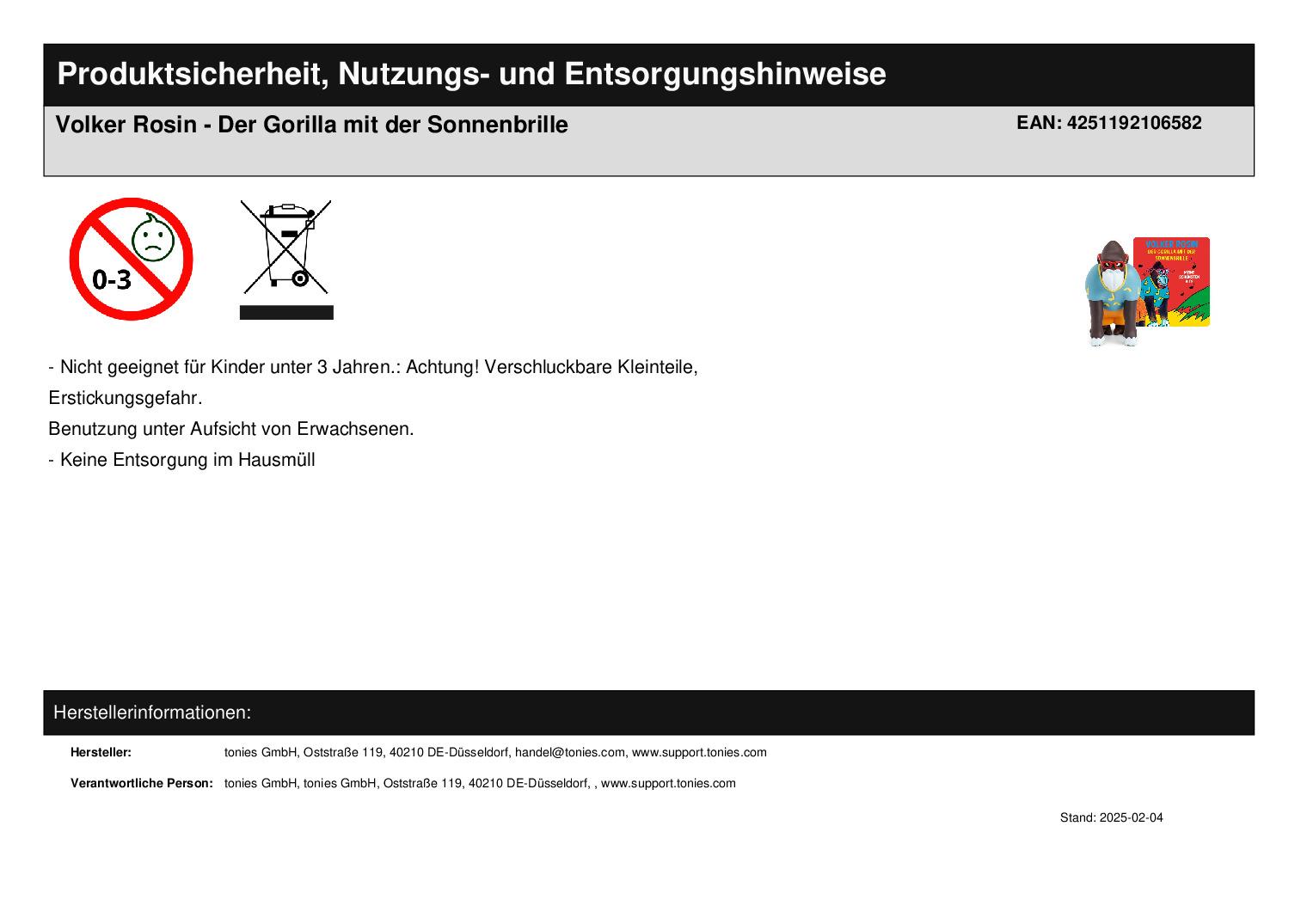 Hörfigur für die Toniebox: Volker Rosin - Der Gorilla mit der Sonnenbrille