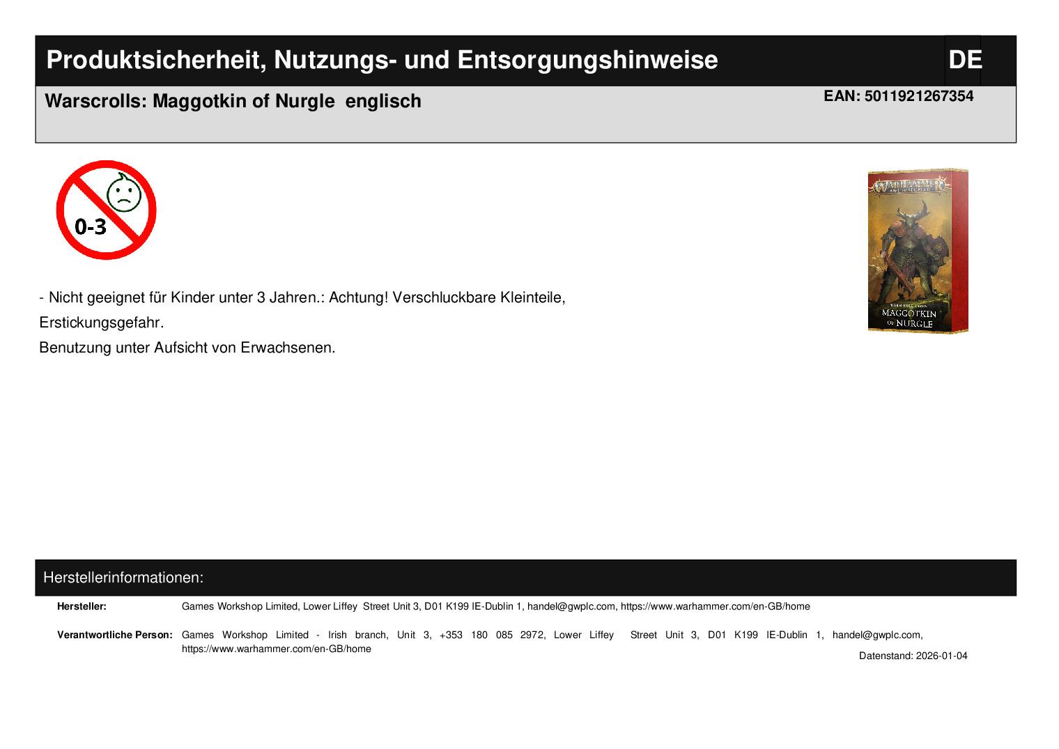 Games Workshop Limited Lower Liffey Street Unit 3 D01 K199 Dublin 1 handel@gwplc.com https://www.warhammer.com/en-GB/home WEEE-Nummer: