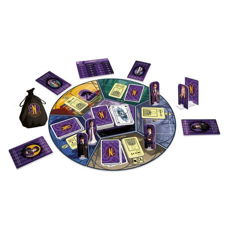 Wednesday: Angriff des Hydes ist ein kooperatives Kartenspiel, in dem die Spieler Außenseiter aus der Nevermore Academy spielen, die es bevorzugen, wenig soziale Kontakte zu pflegen. Um das Spiel zu gewinnen, müssen sie jedoch zusammenarbeiten, um möglichst viele Angriffe des Hydes abzuwehren.