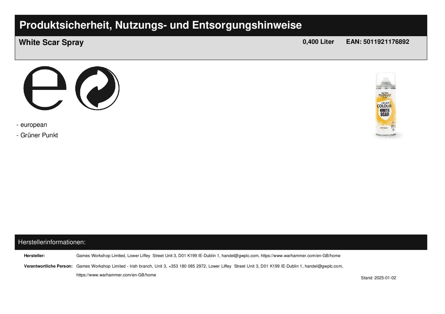 Produktinformationen "White Scar Spray"