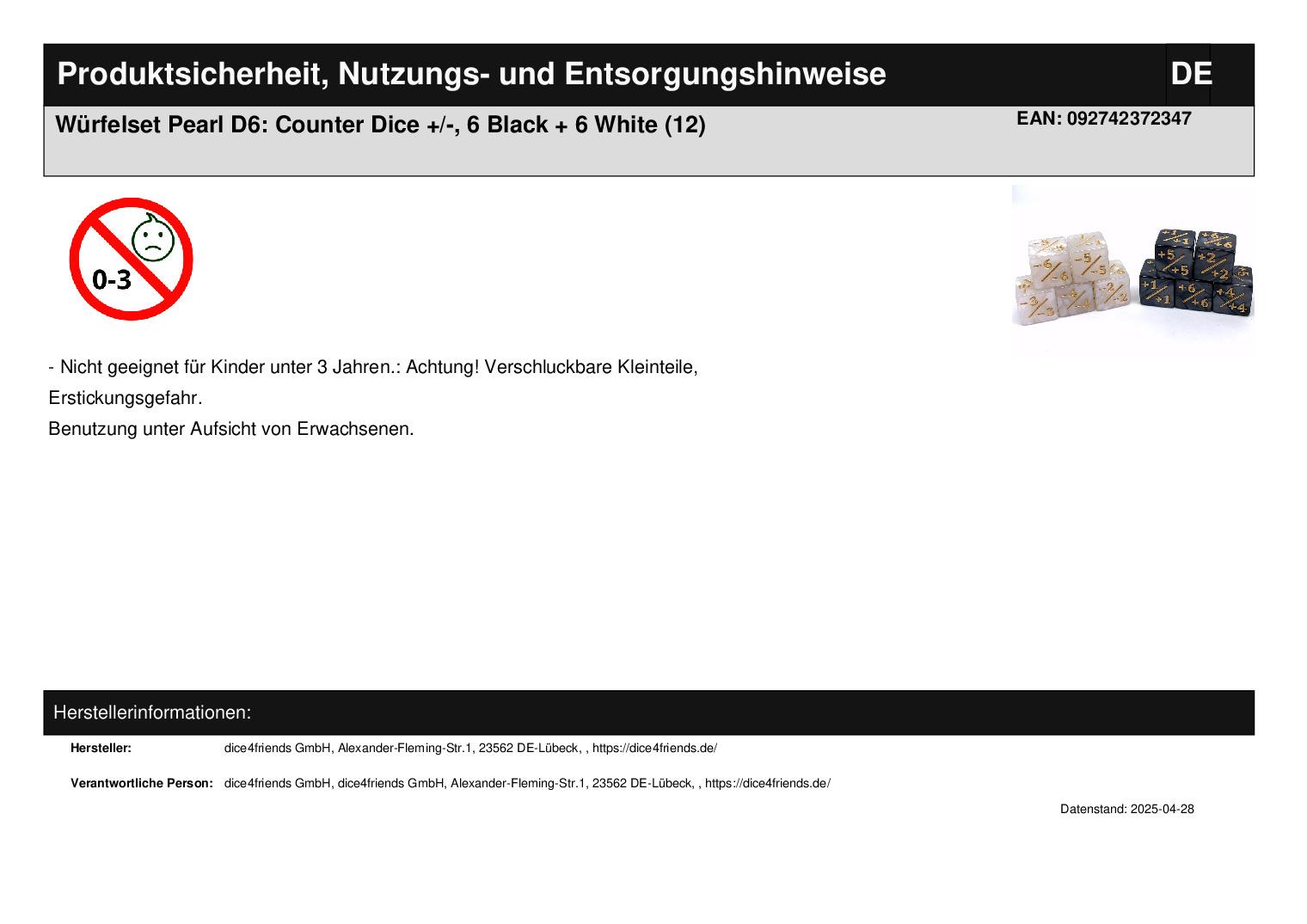 dice4friends GmbH Alexander-Fleming-Str.1 23562 Lübeck https://dice4friends.de/ WEEE-Nummer: