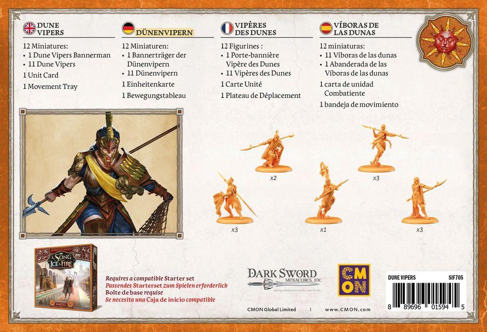 Die Einheiten-Erweiterung A Song of Ice & Fire – Dune Vipers (Dünen-Vipern) bringt insgesamt 12 Miniaturen in die beliebte Welt des epischen Tabletop-Spiels.