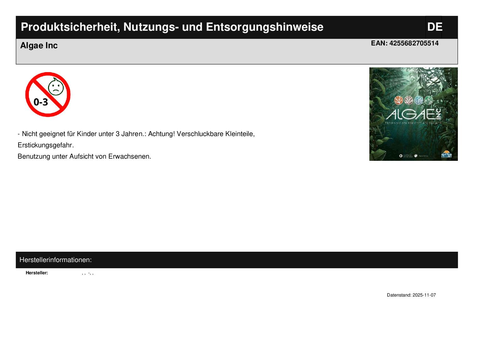 Algae Inc. ist ein Expertenkracher für 1-4 Abteilungsleiter ab 14 Jahren von den Spieleautoren Julia Thiemann und Christoph Waage. Die Illustrationen zeichnet Maxime Sarthou.