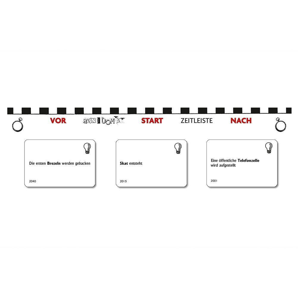 So fügt reihum jeder Spieler der Kette mit den Ereignissen ein neues hinzu, bis ein Mitspieler seine Zweifel äußert und die Kette überprüft wird. Wer falsch lag, bekommt nun Strafkarten vom Stapel, die er ebenfalls wieder loswerden muss. ... und schon wachsen mit der nächsten Ereigniskette die Zweifel der Mitspieler heran. Das einfache Spielprinzip und die kuriosen Ereignisse garantieren einen lange anhaltenden und immer abwechslungsreichen Spielspaß! Die Serien sind nach Themengebieten sortiert, bei den einzelnen Themen ist der Rahmen jedoch weit gesteckt. Natürlich kann jede Serie für sich allein gespielt werden. Das Spiel entfaltet aber einen zusätzlichen Reiz, wenn man die Serien mischt.