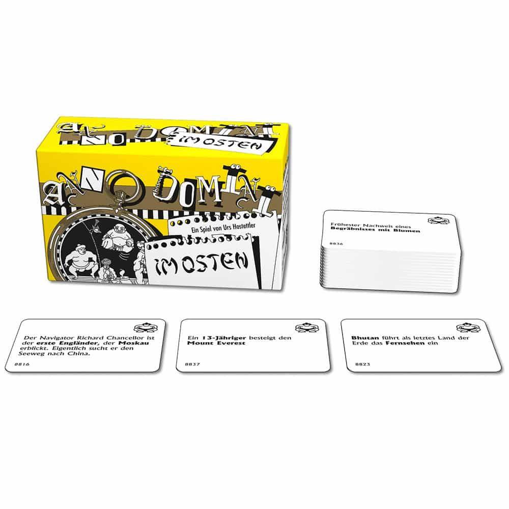 Das einfache Spielprinzip und die kuriosen Ereignisse garantieren einen lange anhaltenden und immer abwechslungsreichen Spielspaß! Die Anno Domini-Serien sind nach Themengebieten sortiert, bei den einzelnen Themen ist der Rahmen jedoch weit gesteckt. Natürlich kann jede Serie für sich allein gespielt werden. Das Spiel entfaltet aber einen zusätzlichen Reiz, wenn man die Serien mischt.