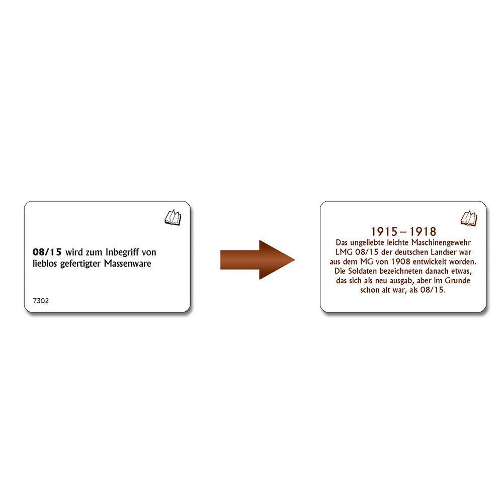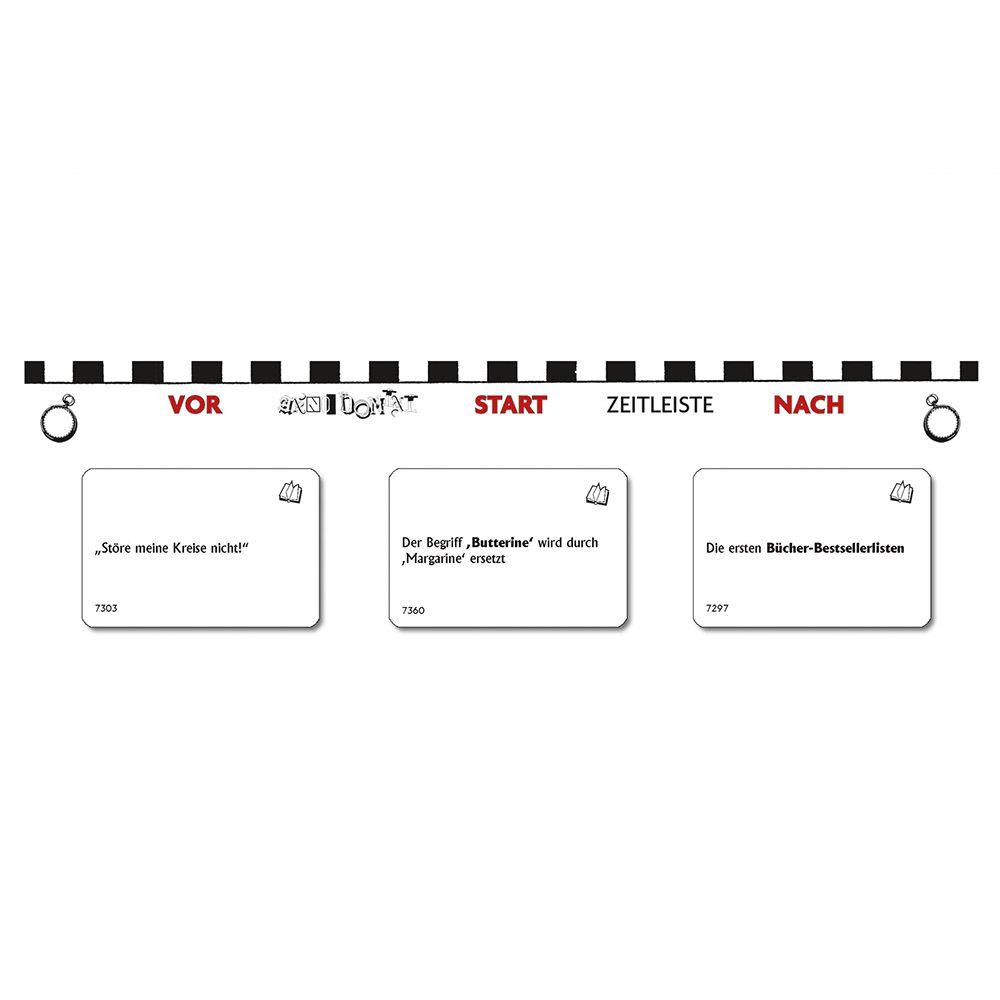 So fügt reihum jeder Spieler der Kette mit den Ereignissen ein neues hinzu, bis ein Mitspieler seine Zweifel äußert und die Kette überprüft wird. Wer falsch lag, bekommt nun Strafkarten vom Stapel, die er ebenfalls wieder loswerden muss. ... und schon wachsen mit der nächsten Ereigniskette die Zweifel der Mitspieler heran. Das einfache Spielprinzip und die kuriosen Ereignisse garantieren einen lange anhaltenden und immer abwechslungsreichen Spielspaß! Die Serien sind nach Themengebieten sortiert, bei den einzelnen Themen ist der Rahmen jedoch weit gesteckt. Natürlich kann jede Serie für sich allein gespielt werden. Das Spiel entfaltet aber einen zusätzlichen Reiz, wenn man die Serien mischt.