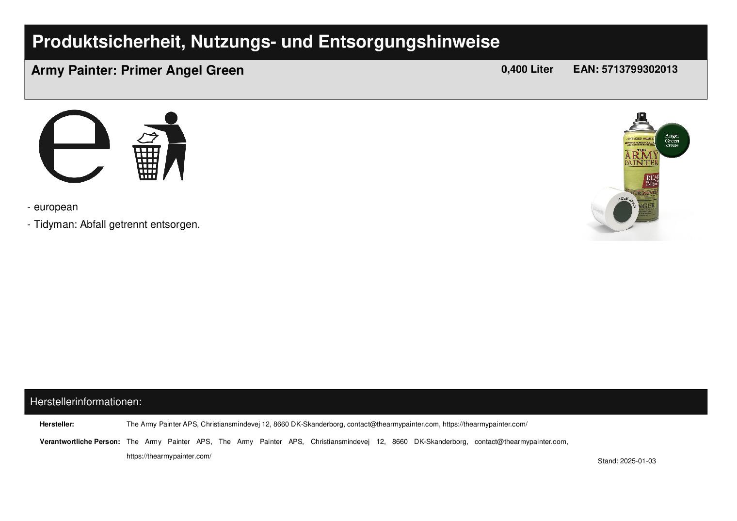 Produktinformationen "Army Painter: Primer Angel Green"