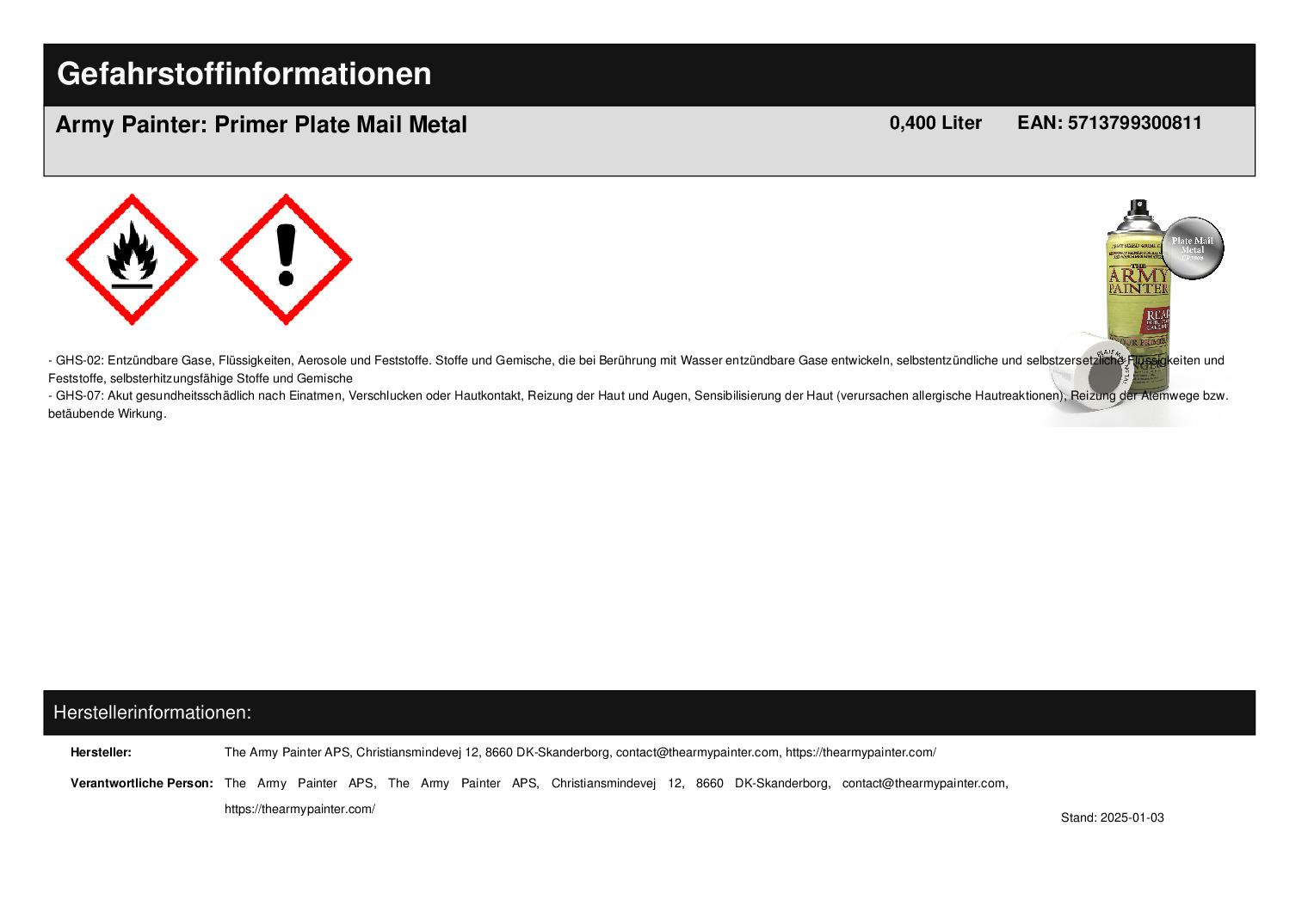 Produktinformationen "Army Painter: Primer Plate Mail Metal"