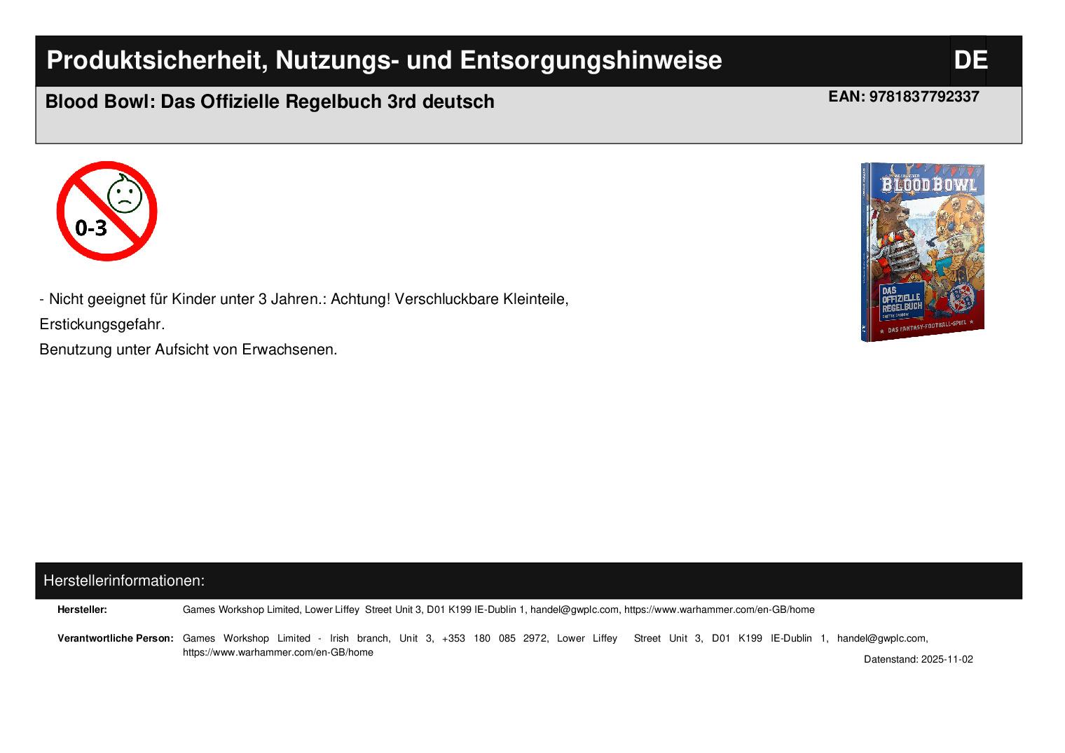 Games Workshop Limited Lower Liffey Street Unit 3 D01 K199 Dublin 1 handel@gwplc.com https://www.warhammer.com/en-GB/home WEEE-Nummer: