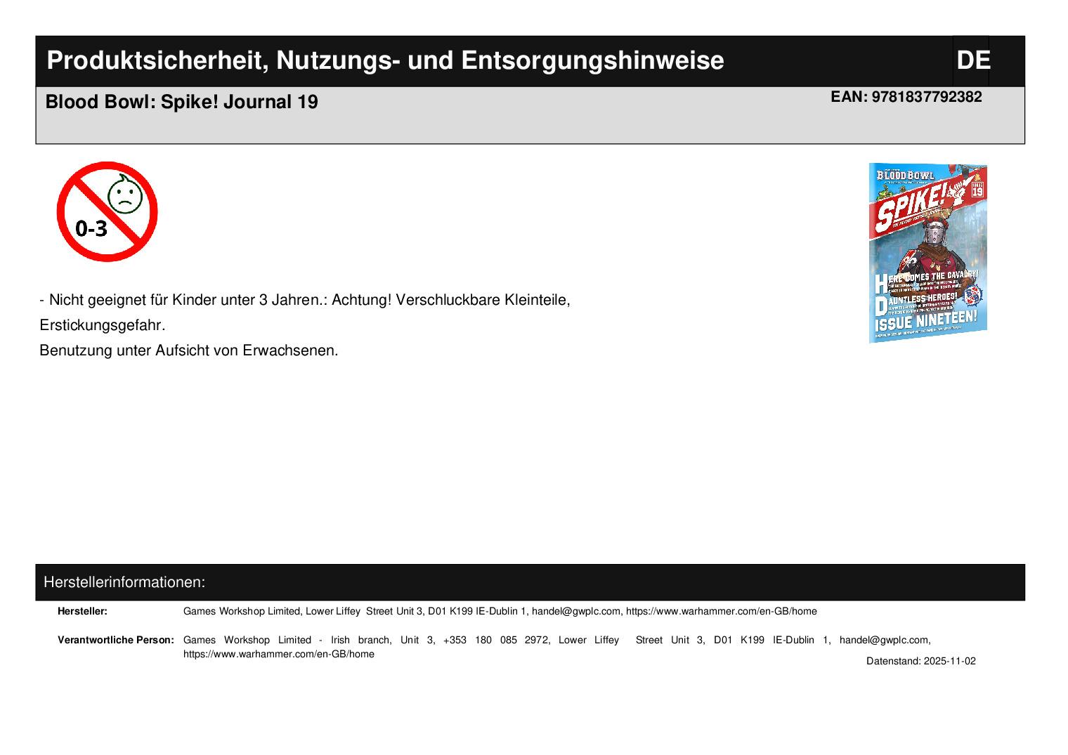 Games Workshop Limited Lower Liffey Street Unit 3 D01 K199 Dublin 1 handel@gwplc.com https://www.warhammer.com/en-GB/home WEEE-Nummer: