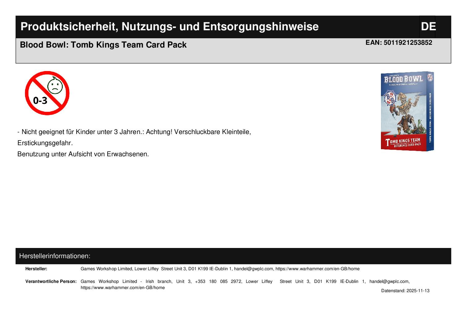 Produktinformationen "Blood Bowl: Tomb Kings Team Card Pack"