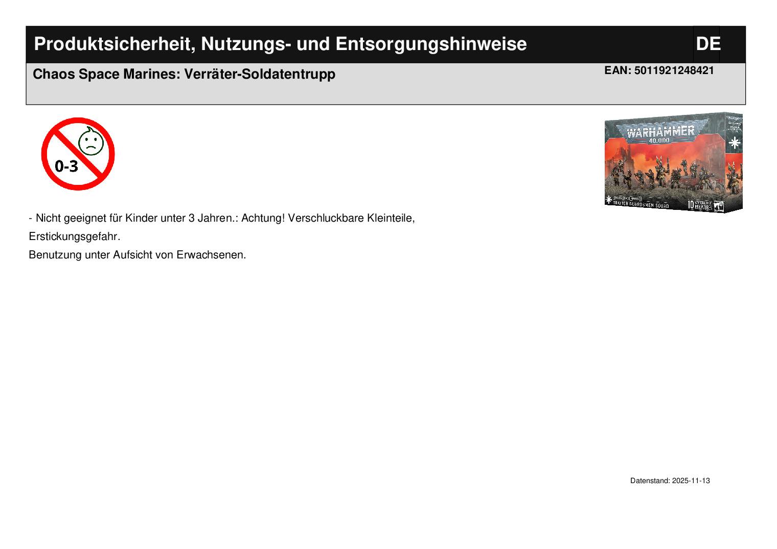 Produktinformationen "Chaos Space Marines: Verräter-Soldatentrupp"