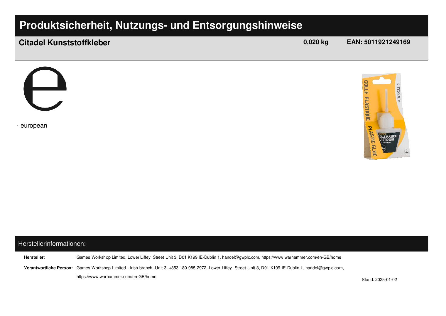 Produktinformationen "Citadel Kunststoffkleber"