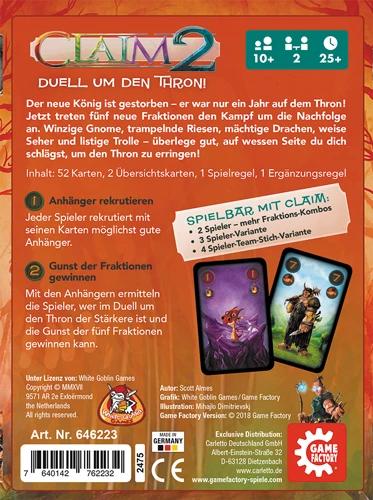 Stichspiel für 2 Personen - oder kombinierbar mit Claim 1 als 3-4-Personen Spiel