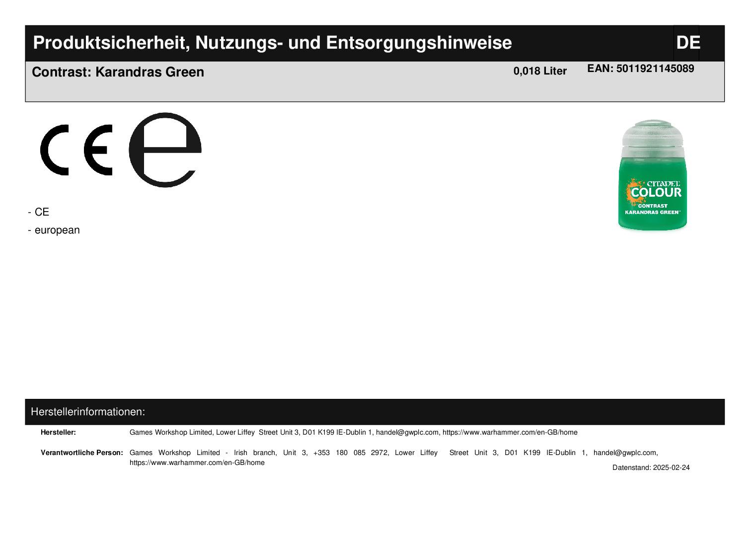 Games Workshop Limited Lower Liffey Street Unit 3 D01 K199 Dublin 1 handel@gwplc.com https://www.warhammer.com/en-GB/home WEEE-Nummer: