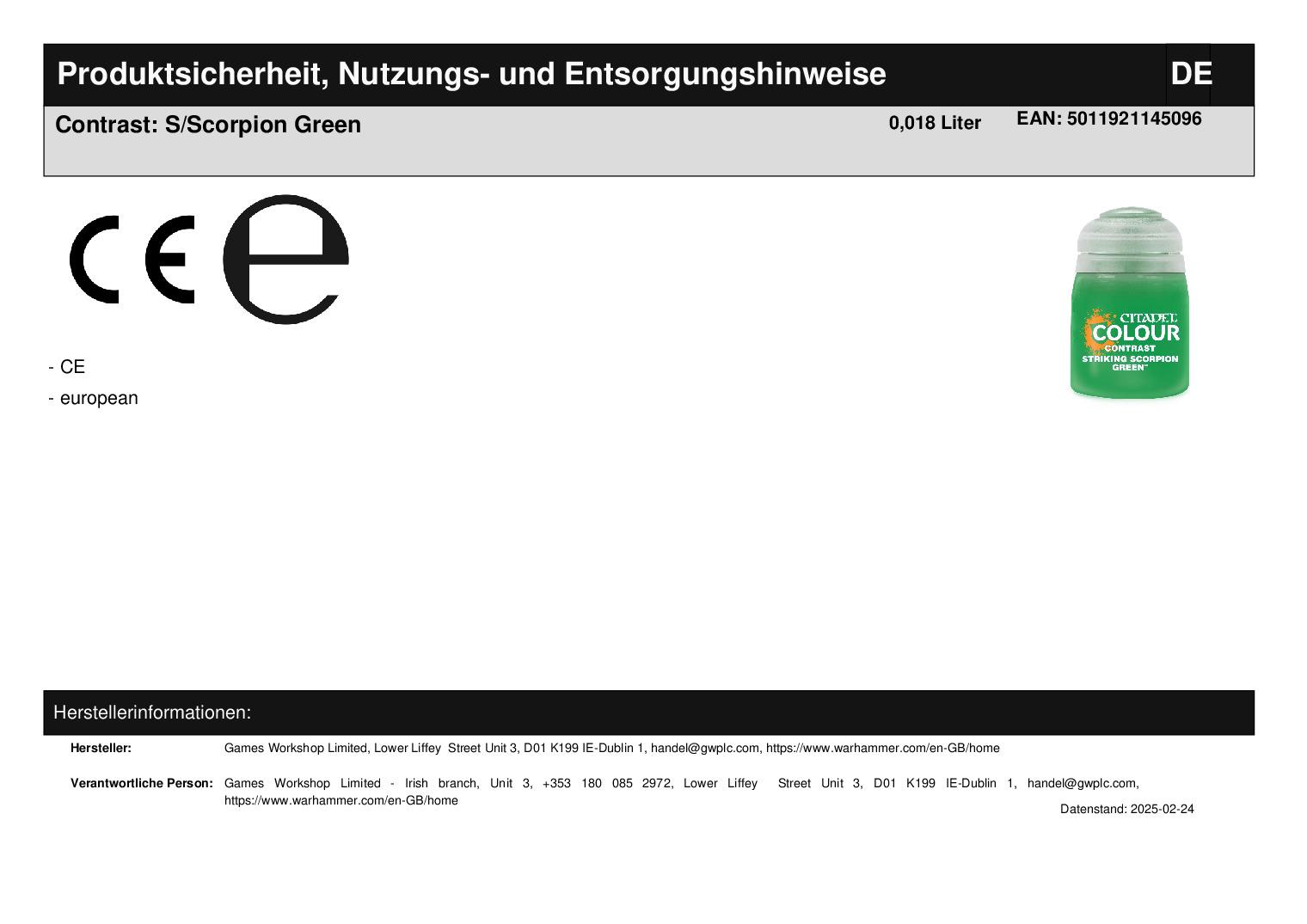 Games Workshop Limited Lower Liffey Street Unit 3 D01 K199 Dublin 1 handel@gwplc.com https://www.warhammer.com/en-GB/home WEEE-Nummer: