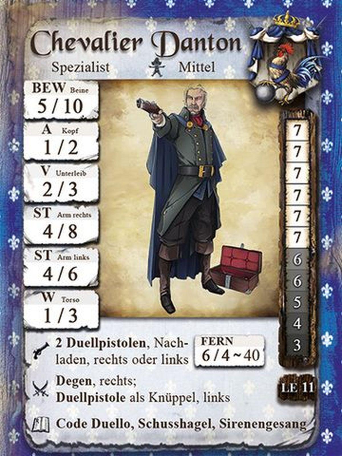 Chevalier Danton ist ein Aristokrat par exelence. Seine Ehre und sein Standesdünken sind ohne Fehl und Tadel. Doch hat er eine verborgene Seite? Auf alle Fälle ist er ein Meisterschütze und verfehlt selten seine Gegner.