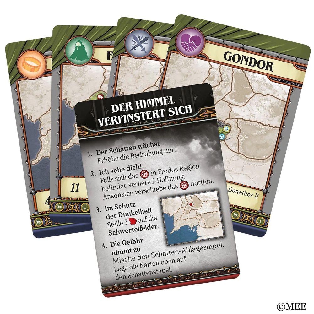 Der Herr der Ringe: Das Schicksal der Gemeinschaft ist ein kooperatives Spiel für 1–5 Personen, in dem jeder von euch 2 Charaktere aus Mittelerde verkörpert. Mit euren einzigartigen Fähigkeiten könnt ihr Frodo beschützen und an entscheidenden Orten Schlachten gegen eure Feinde austragen, immer auf der Hut vor den bedrohlichen Nazgûl und Saurons suchendem Auge.