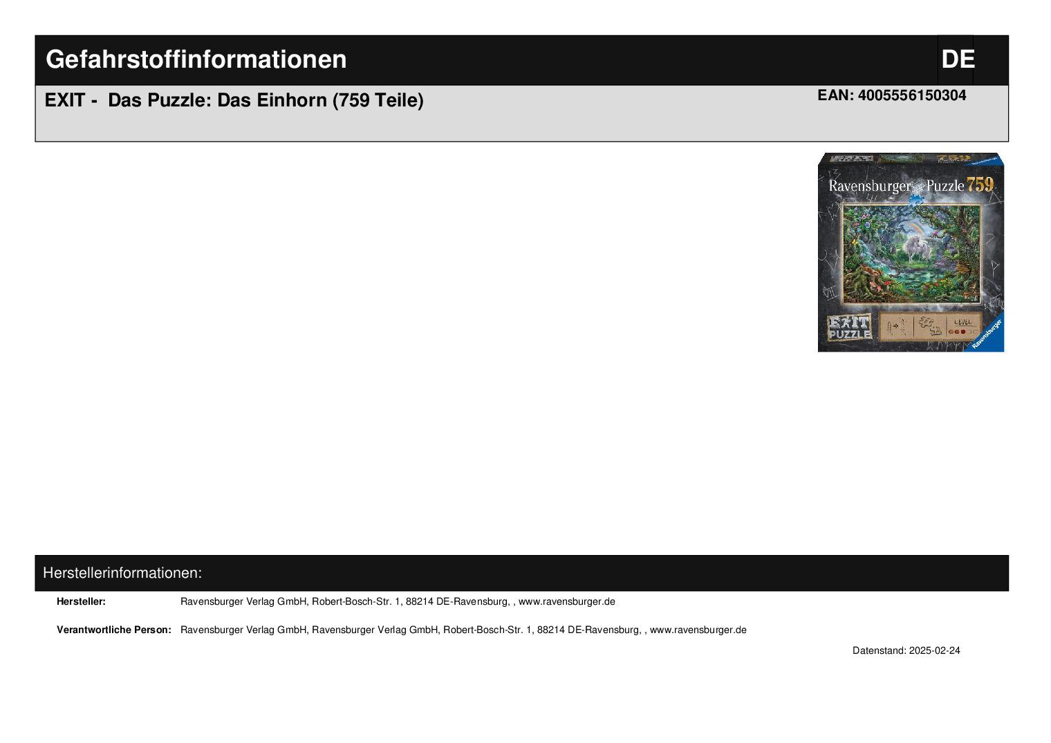 Produktinformationen "EXIT - Das Puzzle: Das Einhorn (759 Teile)"