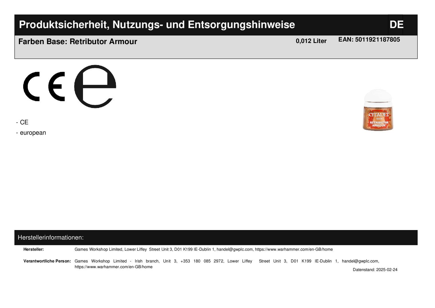Produktinformationen "Farben Base: Retributor Armour"