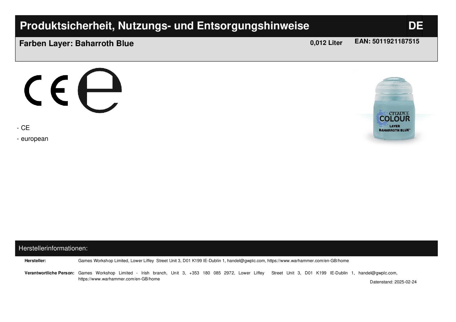 Produktinformationen "Farben Layer: Baharroth Blue"