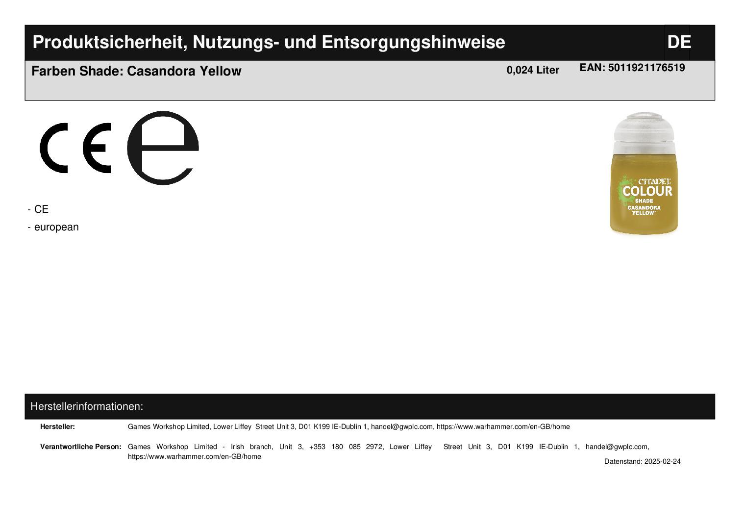 Games Workshop Limited Lower Liffey Street Unit 3 D01 K199 Dublin 1 handel@gwplc.com https://www.warhammer.com/en-GB/home WEEE-Nummer: