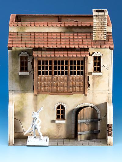 Drei Stockwerke, vollständig gestaltete Innenwände und Böden, viele optionale Teile wie Treppen, Erker und Schornsteine. Beweglich einbaubare Türen.Die Cabañas sind miteinander kombinierbar.Mehrteiliger, unbemalter Lasercut-MDF-Bausatz im 28mm Maßstab, der noch zusammengebaut werden muss.