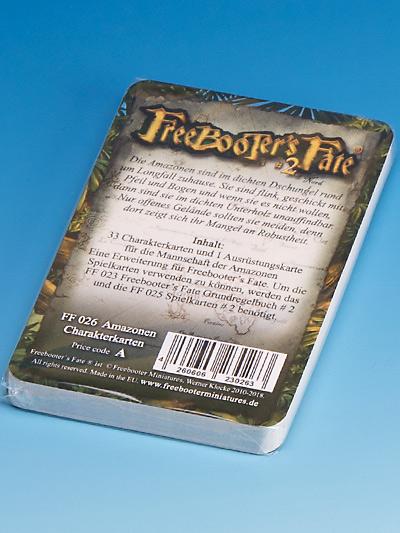 33 Charakterkarten und 1 Ausrüstungskarte für die Mannschaft der Amazonen. Eine Erweiterung für Freebooter's Fate 2. Edition.