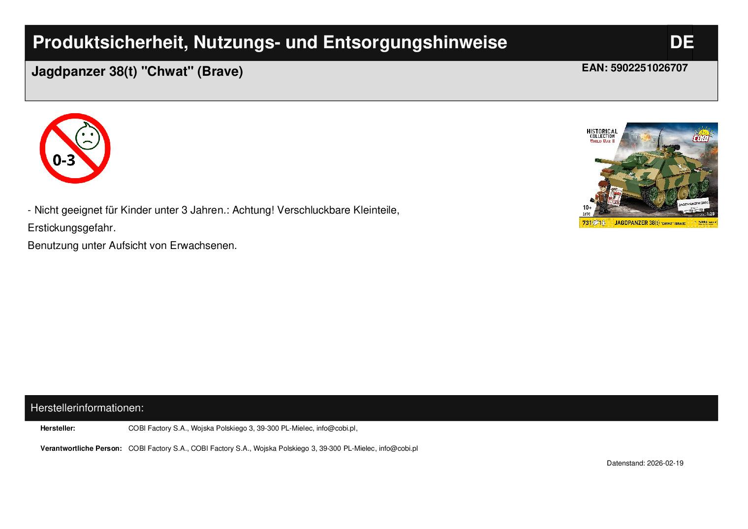 • Maßstab 1:28 – die Proportionen des Modells geben Form und Charakter des Hetzer originalgetreu wieder. Der gewählte Maßstab ermöglicht die Verwendung zahlreicher Strukturdetails bei gleichzeitig voller Funktionalität. Der Maßstab 1:28 ist der detaillierteste für die Sets der HISTORICAL COLLECTION zum Zweiten Weltkrieg. In diesem Maßstab bietet COBI die besten und aufwendigsten Sets für anspruchsvolle Sammler.