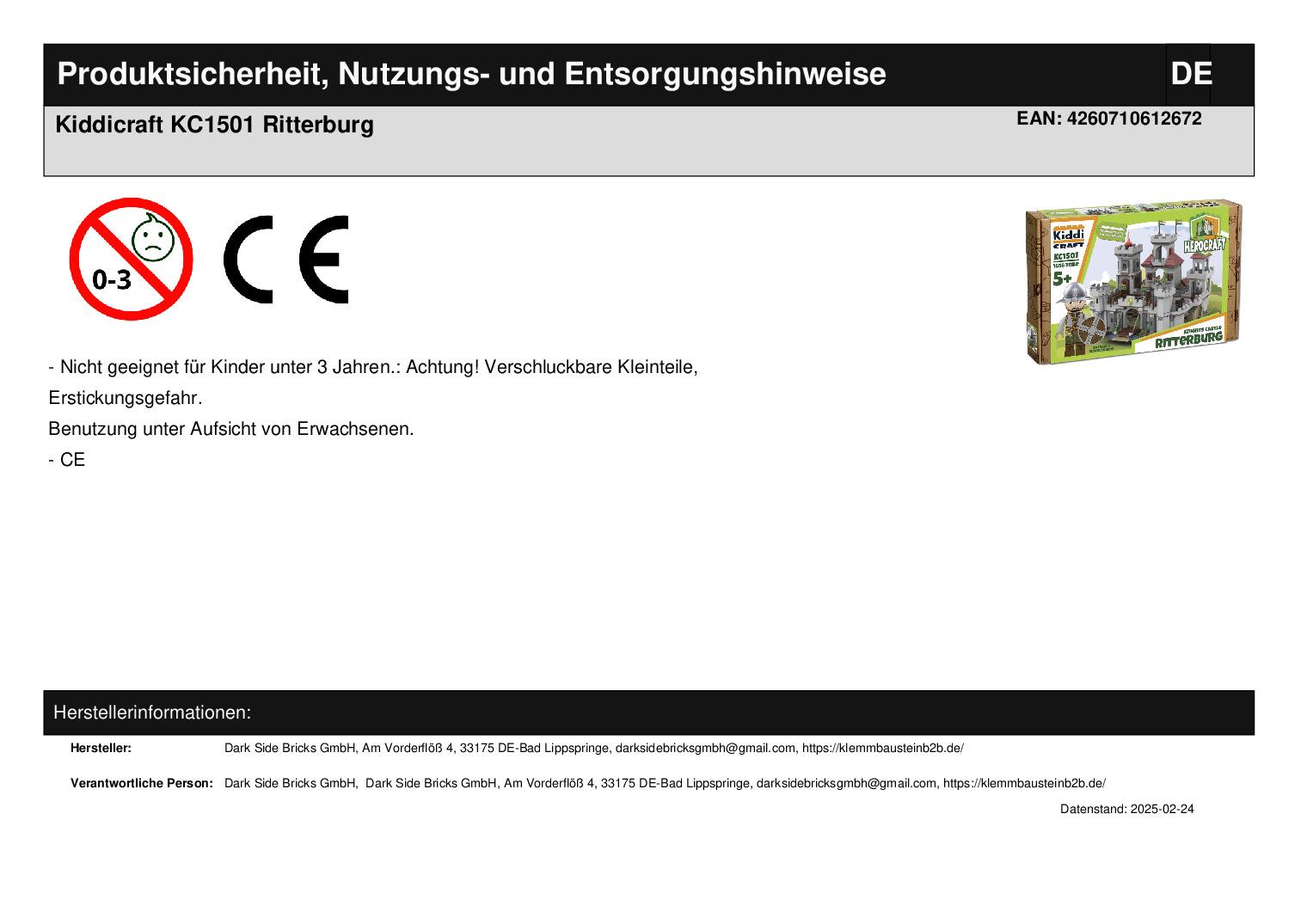 Dark Side Bricks GmbH Am Vorderflöß 4 33175 Bad Lippspringe darksidebricksgmbh@gmail.com https://klemmbausteinb2b.de/ WEEE-Nummer: