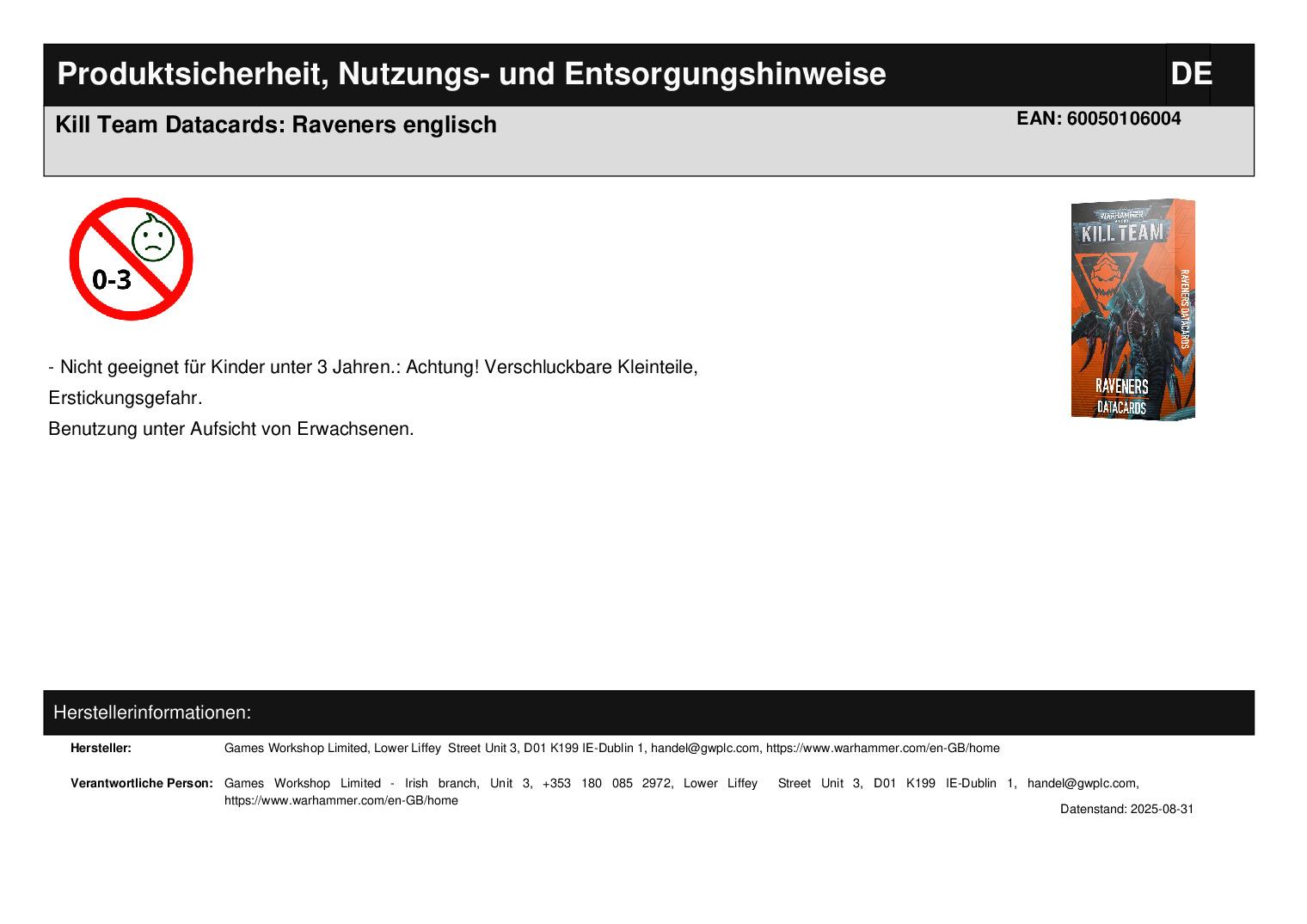 Produktinformationen "Kill Team Datacards: Raveners englisch"