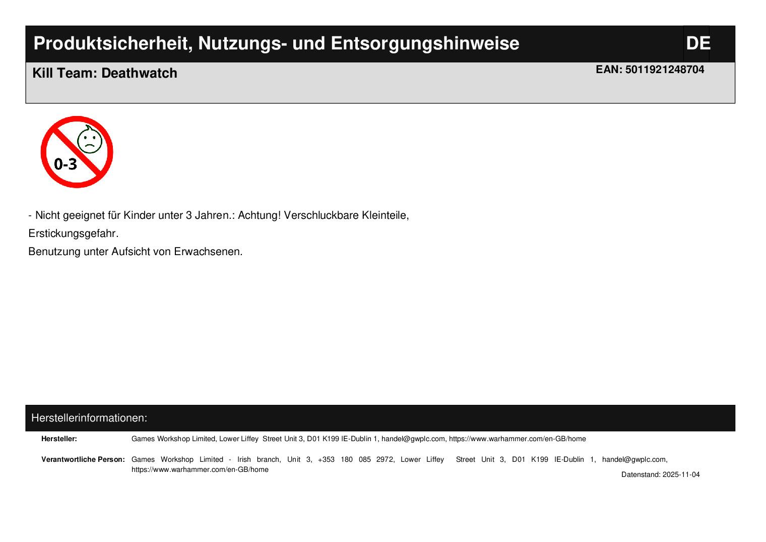Games Workshop Limited Lower Liffey Street Unit 3 D01 K199 Dublin 1 handel@gwplc.com https://www.warhammer.com/en-GB/home WEEE-Nummer: