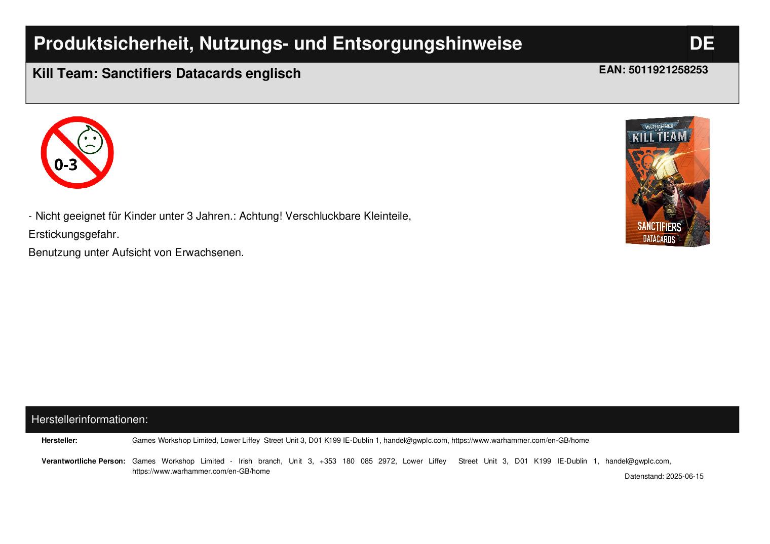 Produktinformationen "Kill Team: Sanctifiers Datacards englisch"