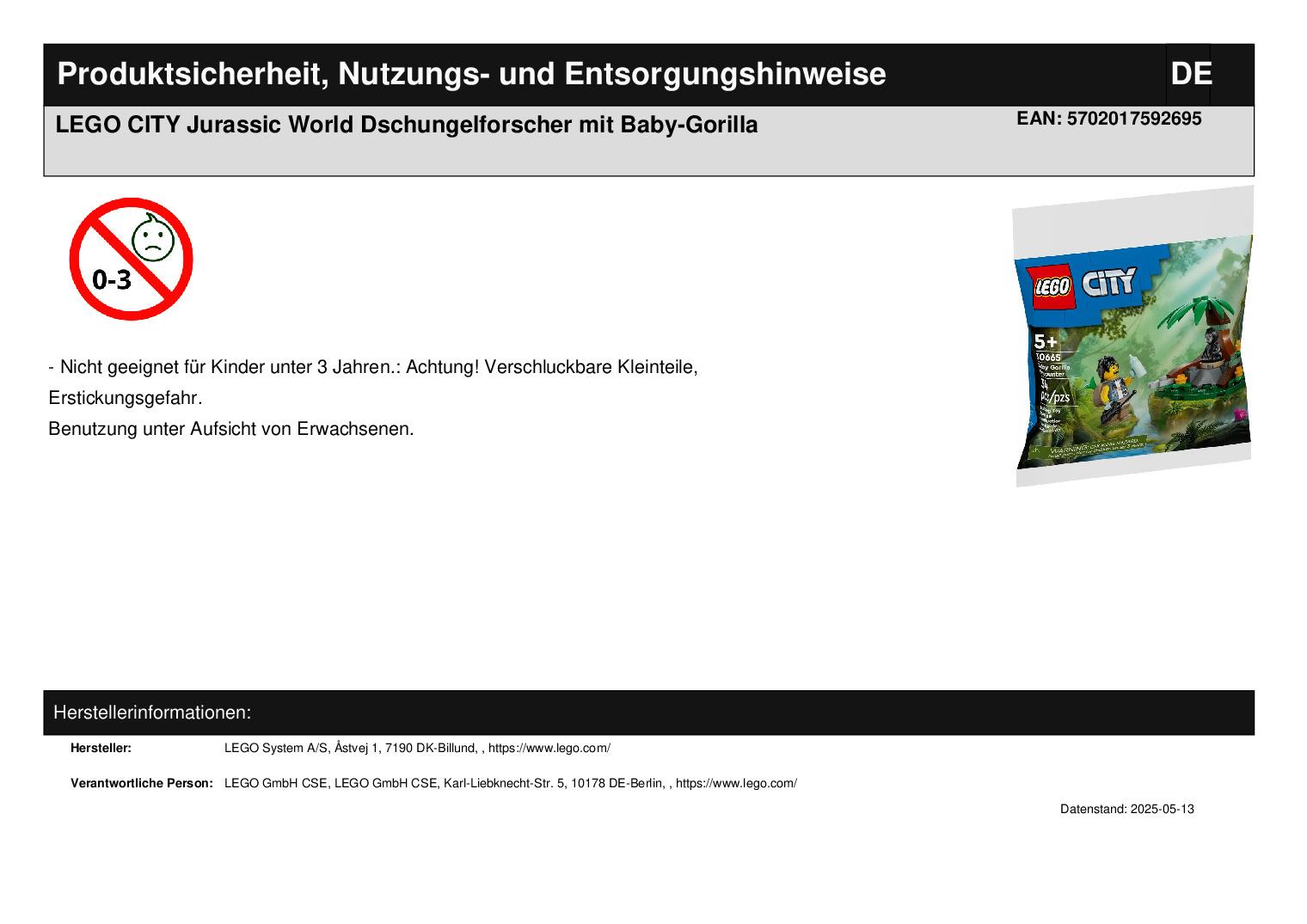 Produktinformationen "LEGO CITY Jurassic World Dschungelforscher mit Baby-Gorilla"