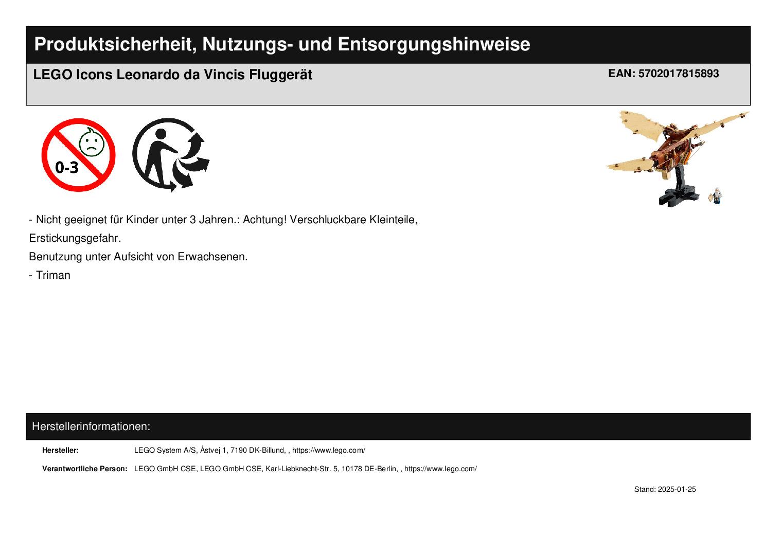 Produktinformationen "LEGO Icons Leonardo da Vincis Fluggerät"