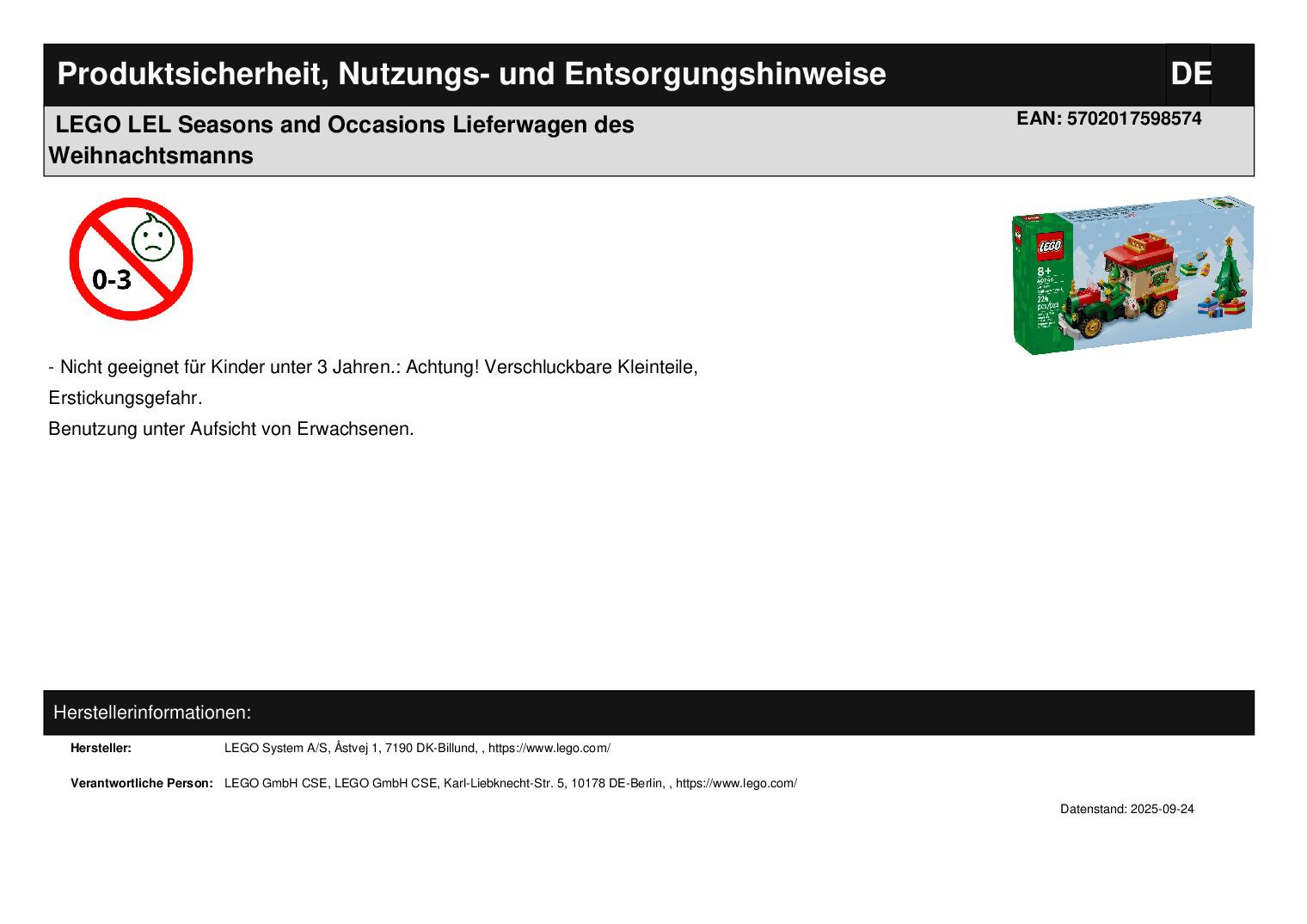 Produktinformationen "LEGO LEL Seasons and Occasions Lieferwagen des Weihnachtsmanns"