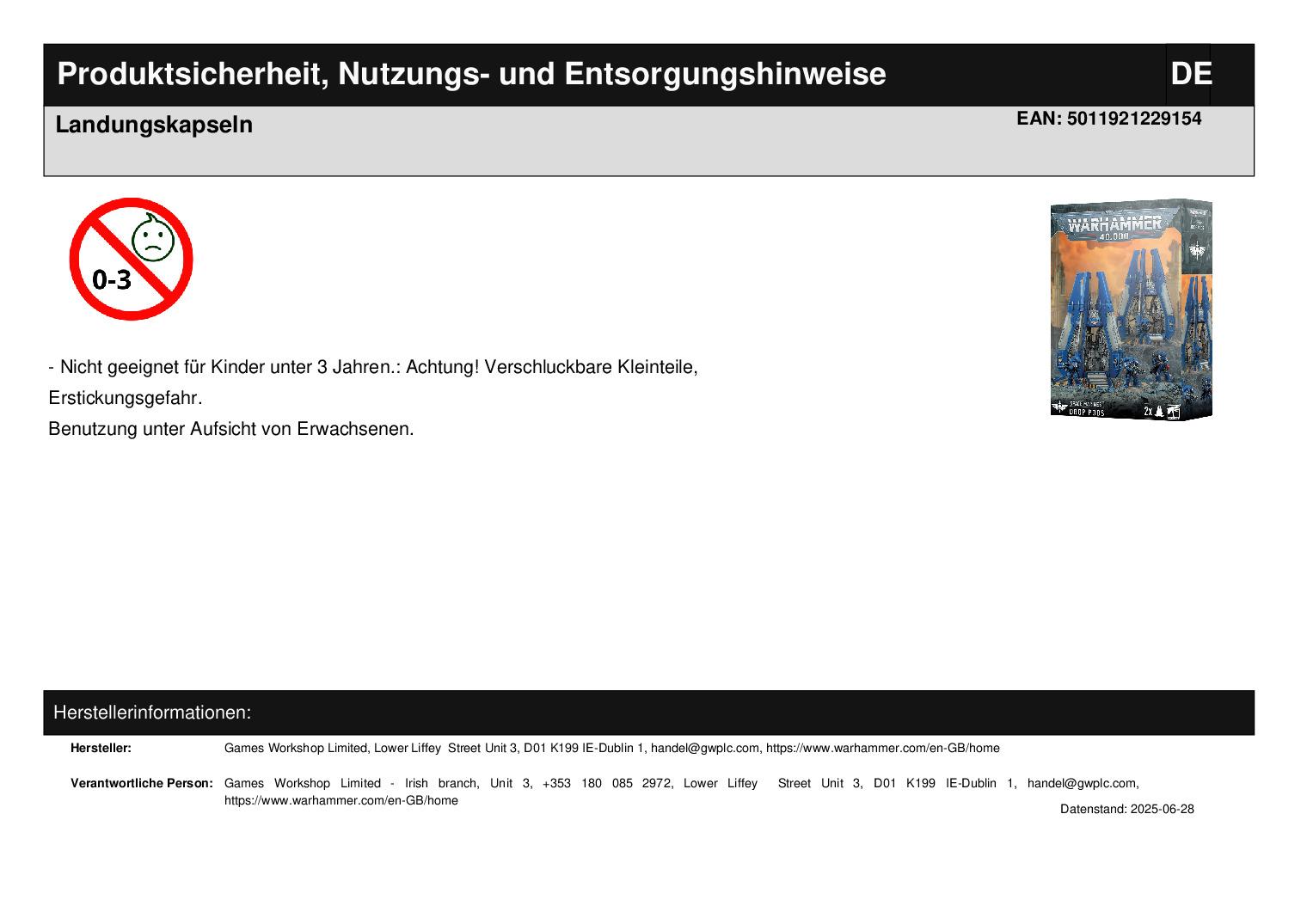 Aus diesem mehrteiligen Kunststoffbausatz kannst du zwei Landungskapseln bauen, Transportfahrzeuge für Armeen der Space Marines bei Spielen von Warhammer 40.000. Störe die feindlichen Pläne, indem du deine Truppen direkt in das Herz der feindlichen Armee, hinter seine Linien oder auf exponierte Flanken wirfst, um dir wichtige Missionsziele zu sichern.