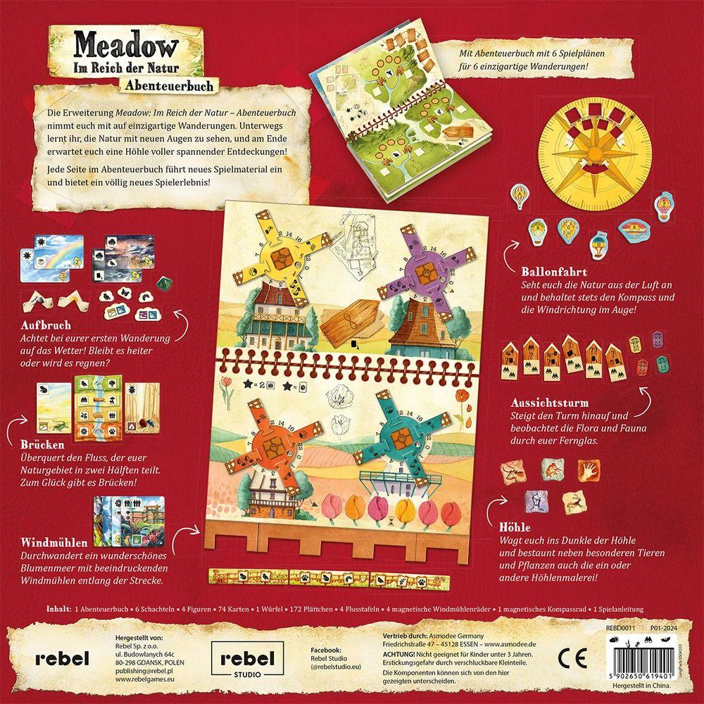 Die Erweiterung Meadow: Im Reich der Natur – Abenteuerbuch nimmt euch mit auf einzigartige Wanderungen. Unterwegs lernt ihr, die Natur mit neuen Augen zu sehen, und am Ende erwartet euch eine Höhle voller spannender Entdeckungen! Jede Seite im Abenteuerbuch führt neues Spielmaterial ein und lässt euch Meadow noch einmal völlig neu erleben!