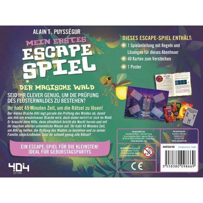 Im Kinderspiel Mein erstes Escape-Spiel: Der magische Wald können selbst jüngste Kinder zu Meister-Rätslern werden. Unter Anleitung von erwachsenen Spielleitern ist es ihre Aufgabe alle Rätsel lösen, um dem kleinen Drachen Athi zu helfen. Ihnen bleiben 45 Minuten Zeit, um ihn zurück zu seiner Familie zu führen und die Prüfung des Waldes zu bestehen.