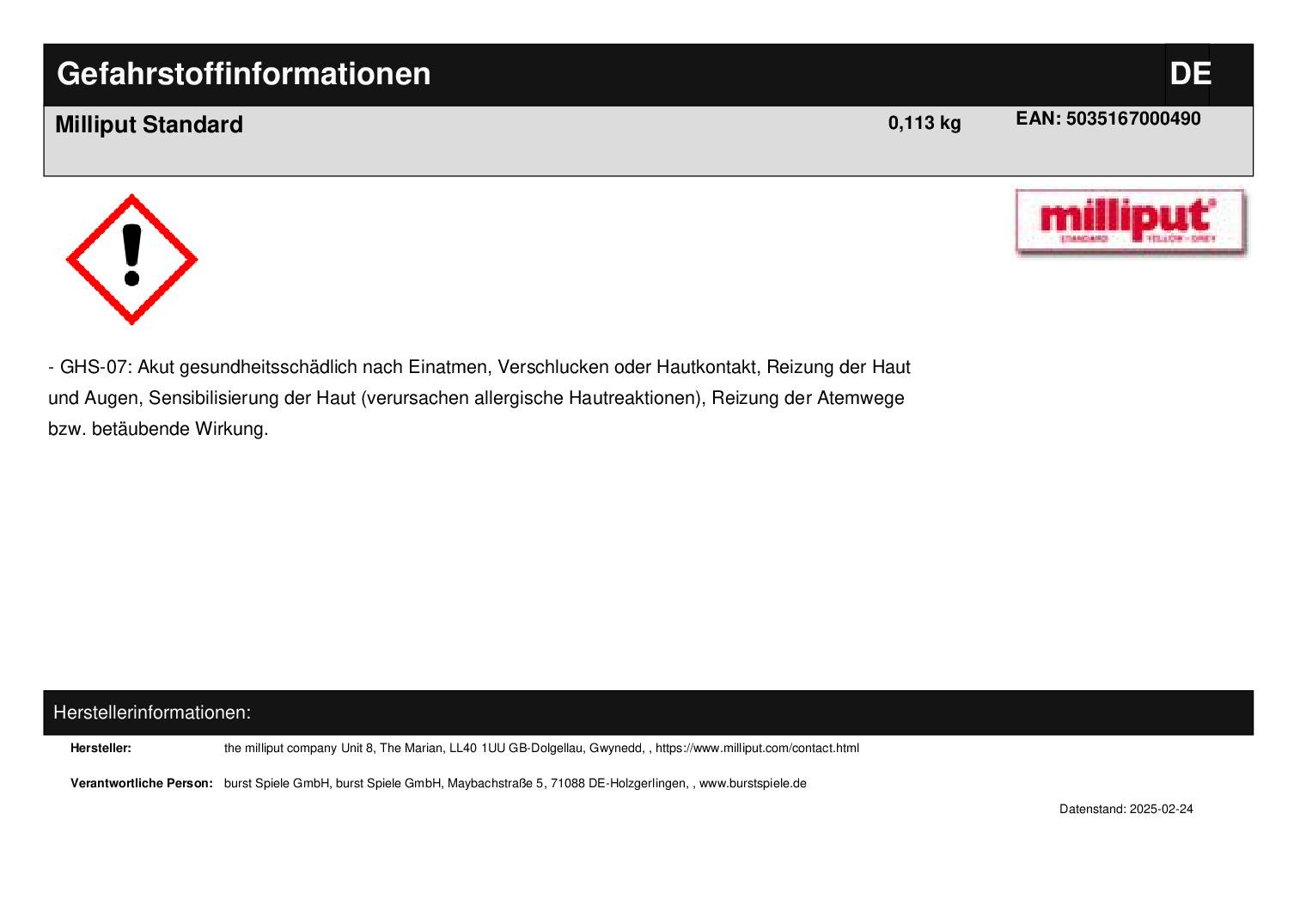 the milliput company Unit 8 The Marian LL40 1UU Dolgellau, Gwynedd https://www.milliput.com/contact.html WEEE-Nummer: