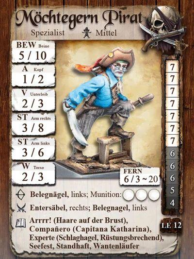 Der Möchtegern Pirat kämpft als Spezialist für die Piraten oder als Compañero für Capitana Katharina.