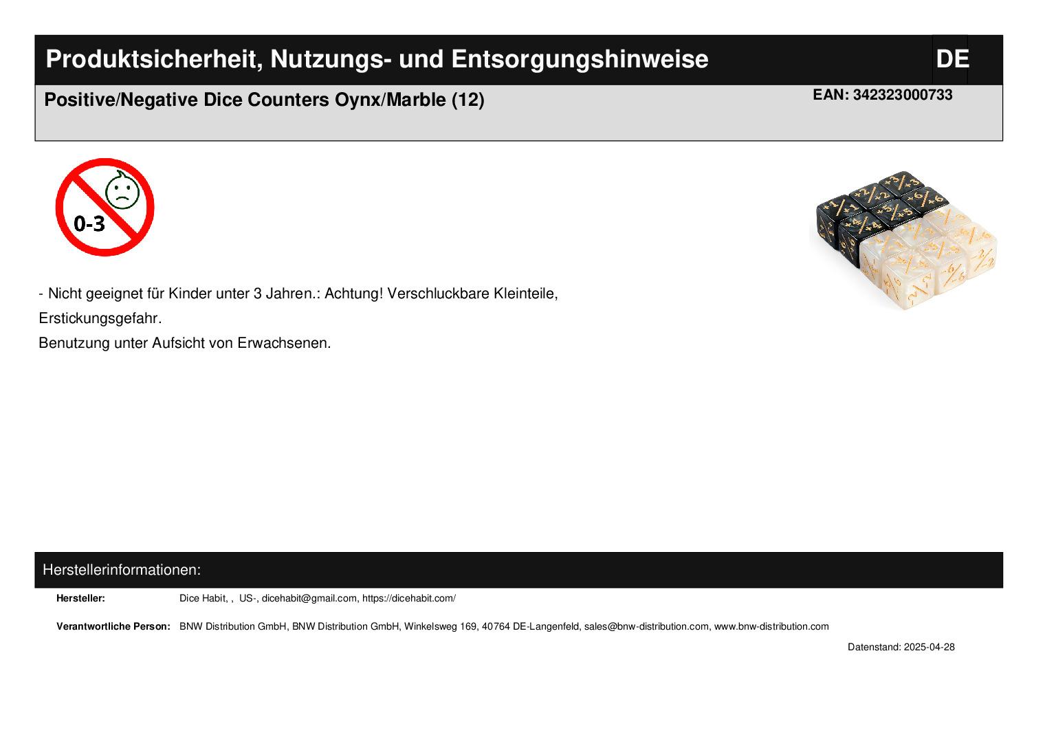 Produktinformationen "Positive/Negative Dice Counters Oynx/Marble (12)"