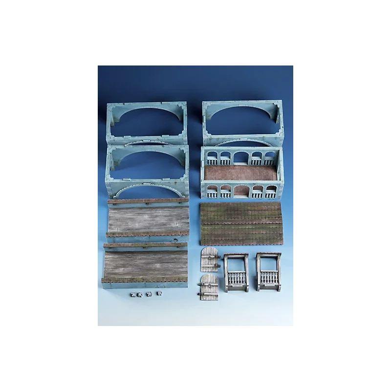 Mehrteiliger, unbemalter Lasercut-HDF-Bausatz im 32 mm Maßstab, der noch zusammengebaut werden muss. Die abgebildeten Figuren sind nicht enthalten und dienen nur dem Größenvergleich. Farben und Klebstoff nicht enthalten.