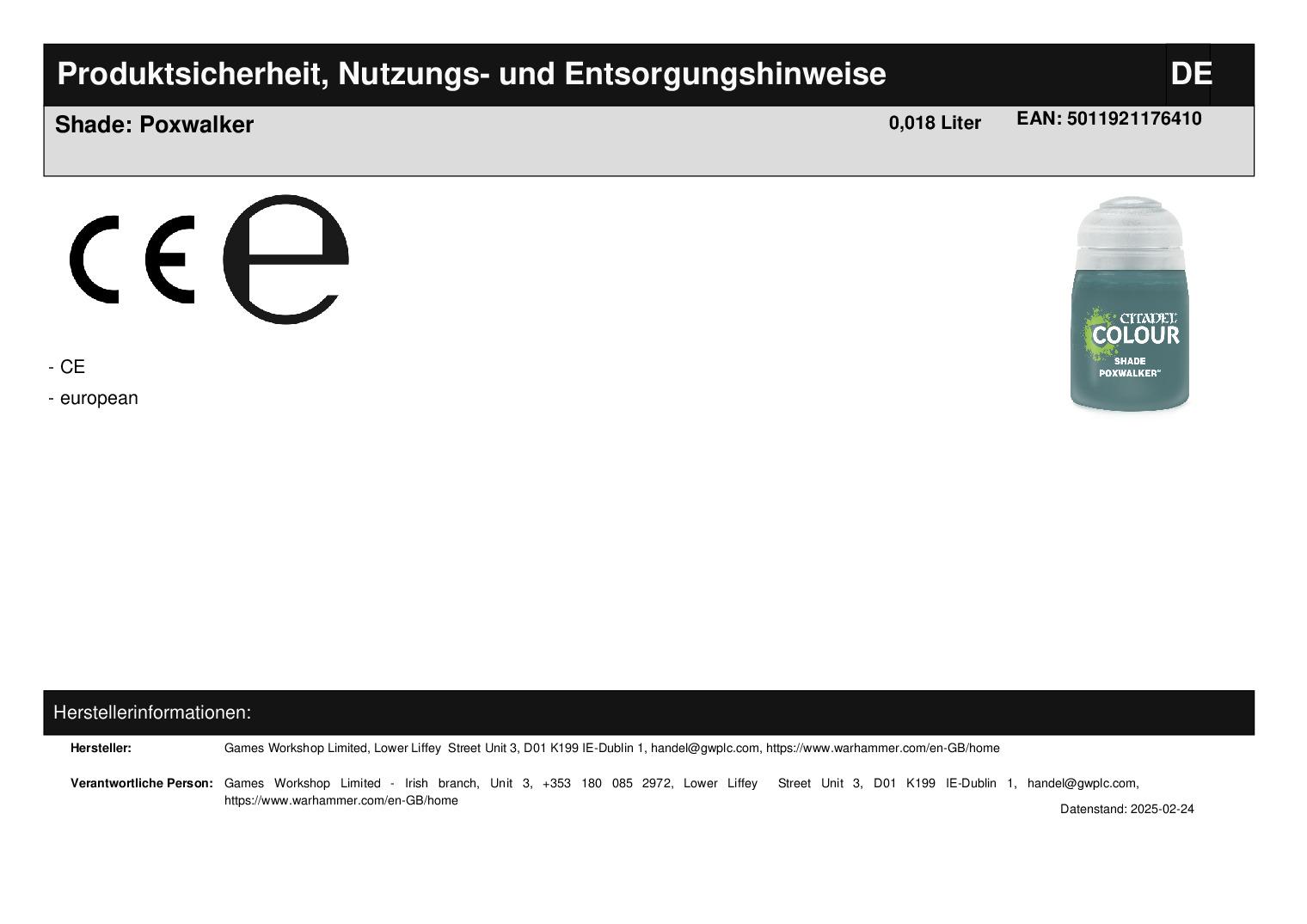 Games Workshop Limited Lower Liffey Street Unit 3 D01 K199 Dublin 1 handel@gwplc.com https://www.warhammer.com/en-GB/home WEEE-Nummer: