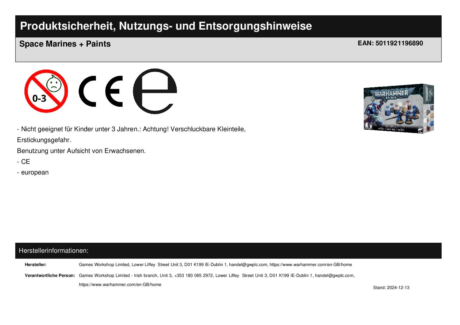 Games Workshop Limited Lower Liffey Street Unit 3 D01 K199 Dublin 1 handel@gwplc.com https://www.warhammer.com/en-GB/home WEEE-Nummer: