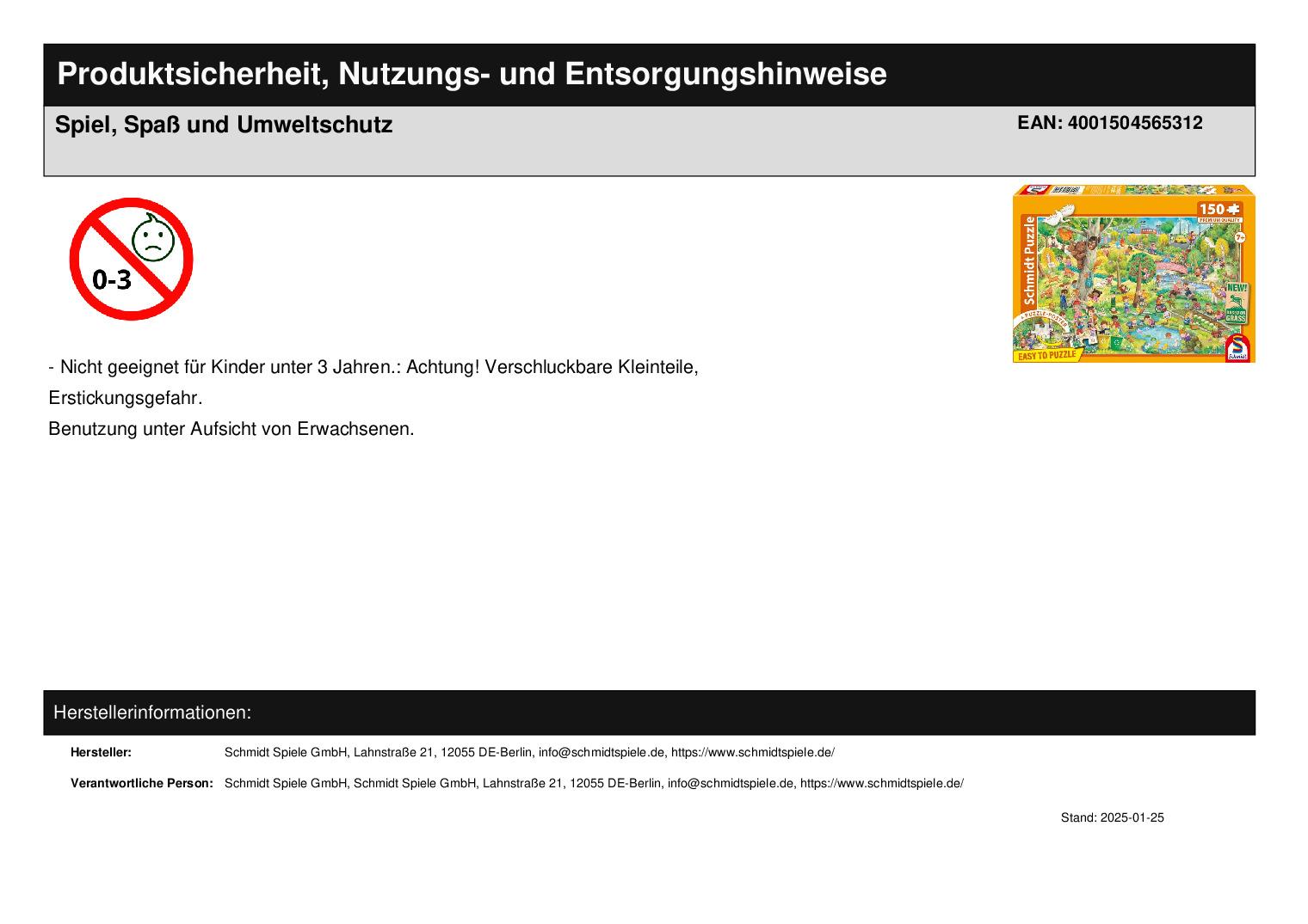 Schmidt Kinderpuzzle mit 150 Teilen Dabei ist Puzzle nicht gleich Puzzle: Schmidt-Puzzles mit ihrer Formenvielfalt und den intensiven Farben haben Premium-Qualität. Durch besonders feine Stanzmesser hat jedes einzelne Teil eine perfekte Passgenauigkeit, der spezielle Mattlack sorgt für spiegelfreies Puzzlevergnügen – all das schafft doppelte Entspannung.
