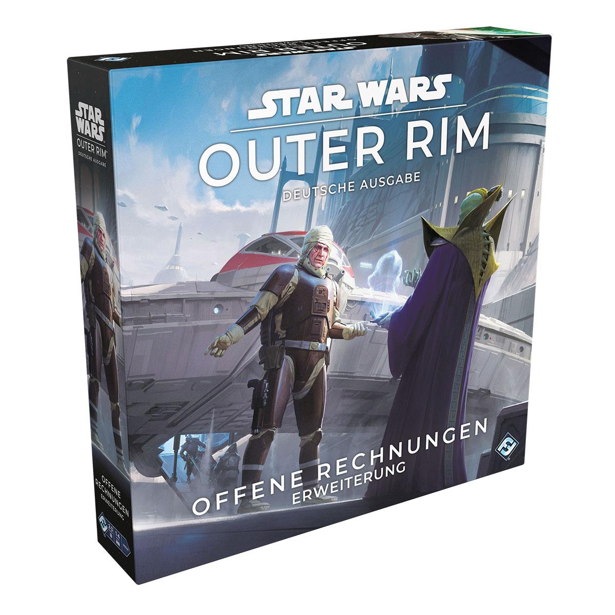 Mit der Erweiterung Offene Rechnungen zum Expertenspiel Star Wars™: Outer Rim bekommen Spieler mehr von allem, was das Spiel zu bieten hat: Charaktere, Schiffe, Ausrüstung, Kopfgeldaufträge, Jobs, Begegnungen, Würfel und vieles mehr. Außerdem können die Spieler mit zwei neuen Spielplanteilen die Kernwelten besuchen.