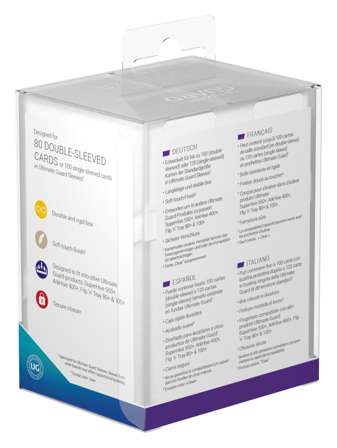 Die handliche, feste Kartenbox mit Soft-Touch-Oberfläche lässt sich besonders leicht öffnen und bietet Platz für bis zu 80 Karten der Standardgröße (double-sleeved). Dank ihrem modularen Design passt sie perfekt in Flip'n'Tray™ und Arkhive™ Cases.