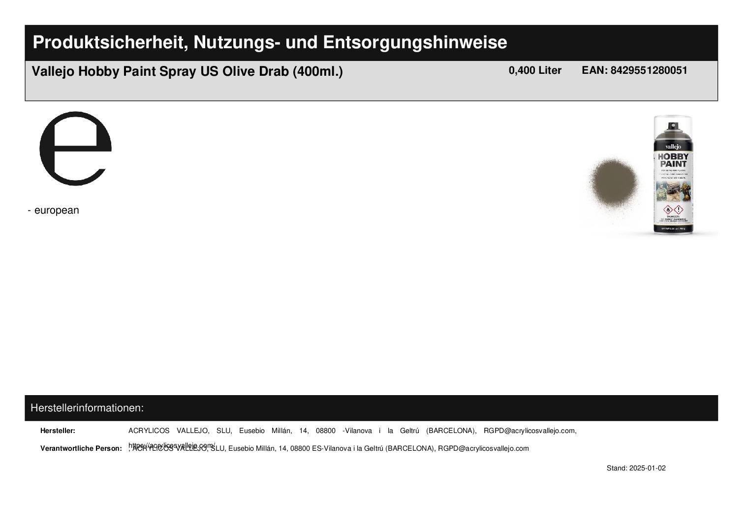 Hersteller "ACRYLICOS VALLEJO, SLU"