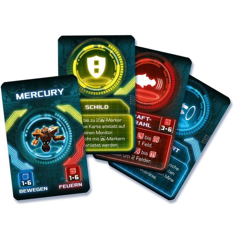 Plane deine nächsten Schritte voraus und schnappe dir schnell eine Startnummer, um deinen Robot später genau im richtigen Moment laufen oder schießen zu lassen. Schubse die anderen Robots in Gruben oder ballere sie mit deinem Laser weg, um Siegpunkte zu bekommen. Klingt einfach - ist es auch, zumindest die Regeln. Die anderen zu erwischen, ohne selbst etwas abzubekommen, kann nämlich ganz schön herausfordernd sein. Zum Glück müssen zerstörte Robots, nicht lange auf ihren nächsten Einsatz warten. Sie starten in der nächsten Runde neu.